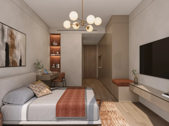 The project offers a diverse range of layouts — from compact studios to spacious two-bedroom apartments — catering to both families and investors.